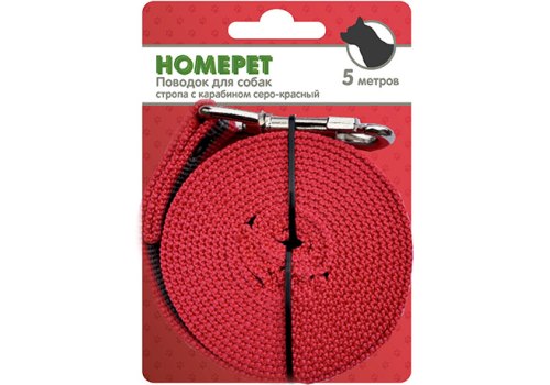 Homepet Поводок Хоумпет для собак Стропа с карабином 25 мм х 5 м Серо-Красный