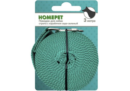 Homepet Поводок Хоумпет для собак Стропа с карабином 25 мм х 3 м Серо-Зеленый
