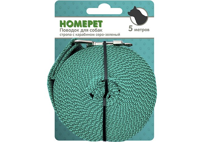 Homepet Поводок Хоумпет для собак Стропа с карабином 25 мм х 5 м Серо-Зеленый