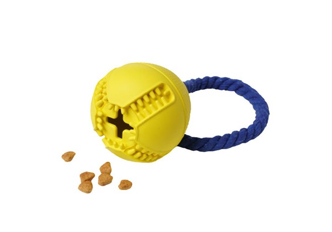 Homepet Silver Series Игрушка Хоумпет для собак Мяч с канатом с отверстием для лакомств Каучуковый D 7,6 см х 8,2 см Желтый