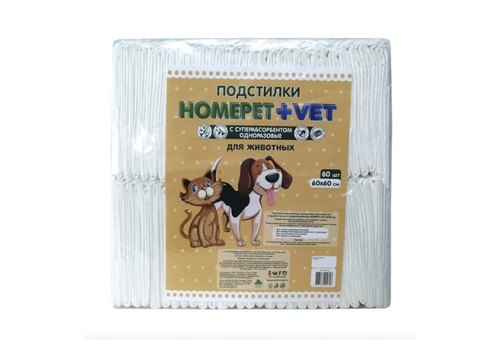Homepet Vet Подстилки Хоумпет для животных впитывающие с суперабсорбентом гелевые 60 см х 60 см 60 шт
