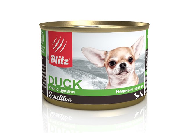 Blitz Sensitive Duck Консервы Блиц для взрослых собак Мелких пород нежный Паштет Утка с Цукини (цена за упаковку) 200г х 24шт