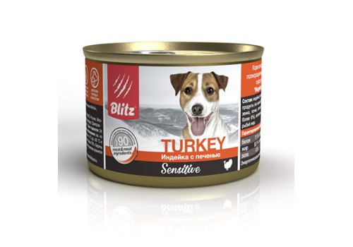 Blitz Sensitive Консервы Блиц для собак Индейка с Печенью (цена за упаковку) 200г х 24шт