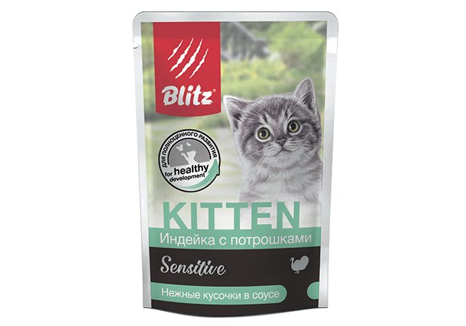 Blitz Kitten Sensitive Healthy Development Паучи Блиц для Котят Индейка с Потрошками (цена за упаковку) 85г х 24шт