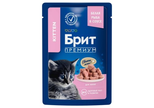 Brit Premium Gravy White Fish Chunks Kitten Паучи Брит Премиум для Котят Белая рыба в соусе (цена за упаковку) 85г х 14шт