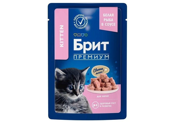 Полнорационный влажный корм премиум-класса для котят белая рыба в соусе