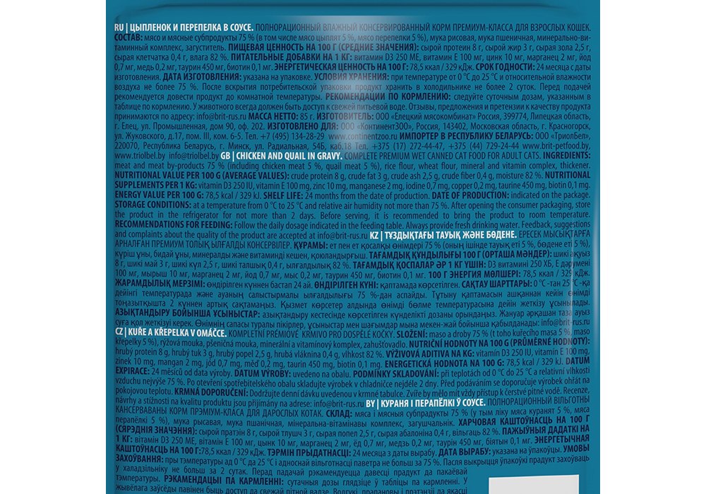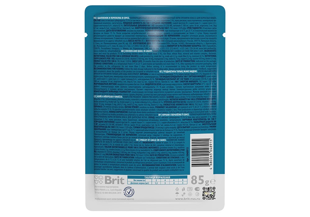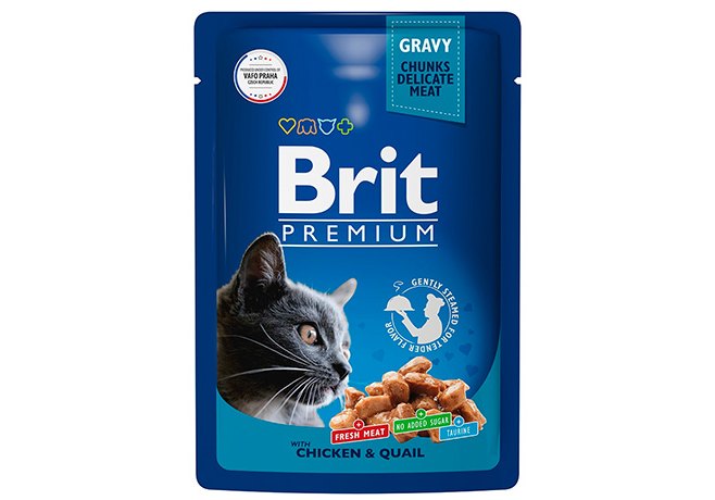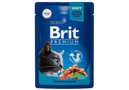 Brit Premium Gravy Chicken & Quail Паучи Брит Премиум для кошек Цыпленок и Перепелка в соусе (цена за упаковку) 85г х 14шт