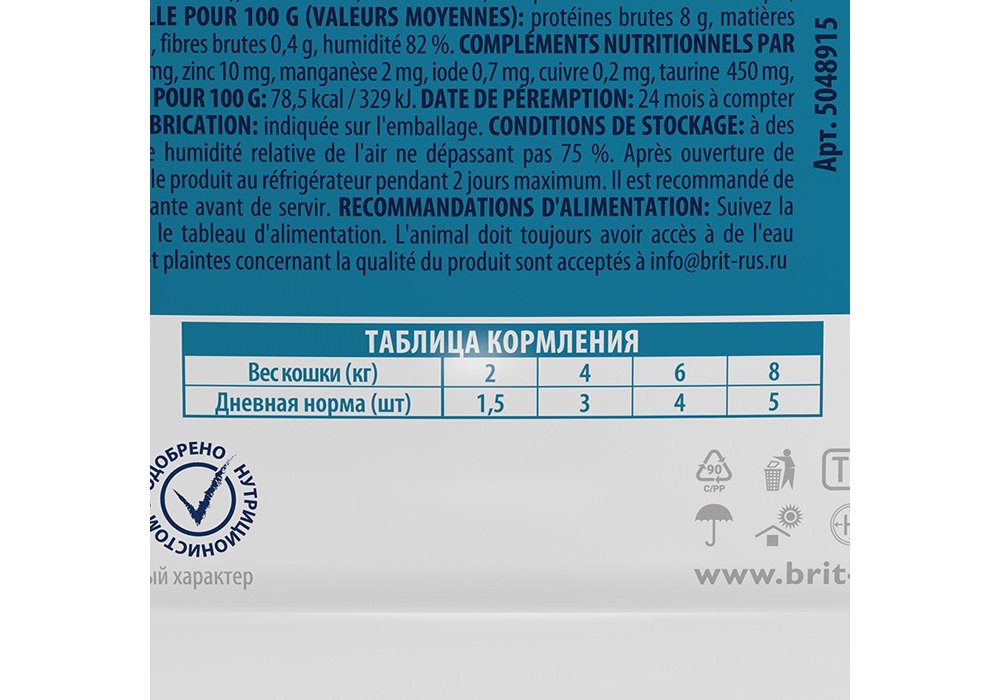 Паучи отлично дополнят полнорационный сухой корм Brit Premium и внесут разнообразие в питание Вашей кошки.