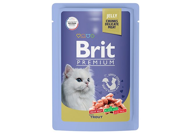 Полнорационный влажный корм премиум класса для взрослых кошек Brit Premium форель в желе.