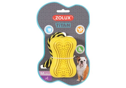 Zolux Titan Игрушка Золюкс для собак Кость-кормушка с веревкой Резина M 10 см Желтая