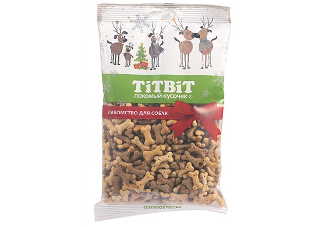 Titbit Новогодняя коллекция Бисквиты Титбит для собак Мясные косточки мини 120 г