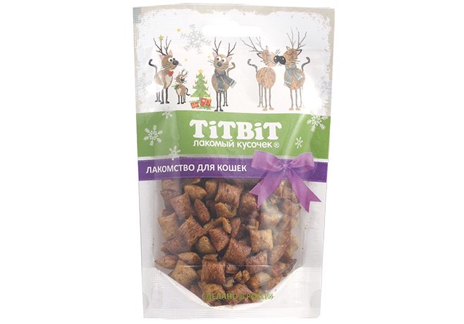 Titbit Новогодняя коллекция Лакомство Титбит для кошек Хрустящие подушечки для кошек с паштетом из Индейки 50 г