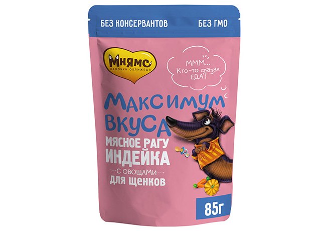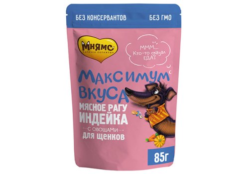 Мнямс Максимум вкуса Влажный корм Паучи для Щенков Мясное рагу Индейка с овощами (цена за упаковку) 85г х 24шт