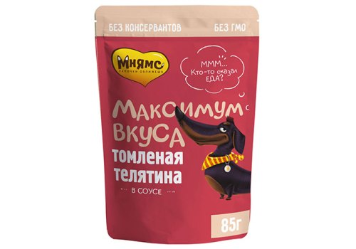 Мнямс Максимум вкуса Влажный корм Паучи для собак Томленая Телятина в соусе (цена за упаковку) 85г х 24шт