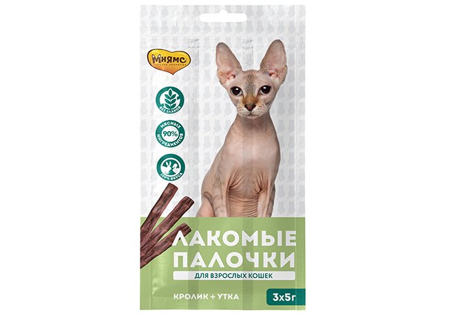 Мнямс Лакомство для кошек Лакомые палочки 13,5 см Утка и Кролик NEW 5г х 3шт