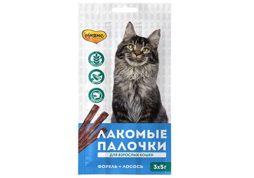 Мнямс лакомые палочки для кошек с лососем и форелью станут любимым угощением для вашего питомца. Кроме того, что каждая палочка содержит высококачественные морепродукты, в ее состав также входят и продукты растительного происхождения, которые гарантировано подарят кошке здоровый вид.