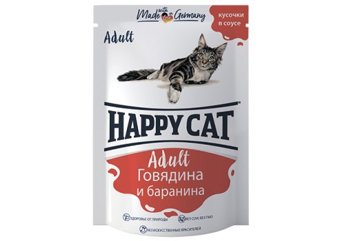 Happy Cat Паучи Хэппи Кэт для кошек Говядина, Баранина в Соусе (цена за упаковку, Россия) 100г х 24шт