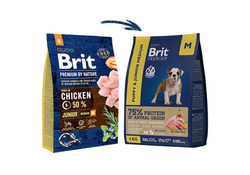 Полнорационный сухой корм Brit Premium Junior Medium с курицей для молодых собак (1-12 месяцев) средних пород (10-25 кг). Подходит для беременных и кормящих собак.