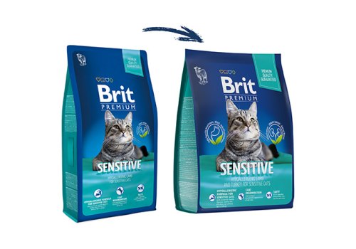 Brit Premium Sensitive. Полнорационный сухой корм премиум класса с индейкой и ягненком для взрослых кошек с чувствительным пищеварением.