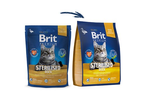 Brit Premium Sterilised Duck. Полнорационный сухой корм премиум класса с уткой и курицей для взрослых стерилизованных кошек.