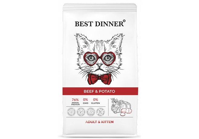 Best Dinner Adult & Kitten Beef & Potato Сухой корм Бест Диннер для Котят с 1 месяца и кошек Говядина картофель 1,5 кг