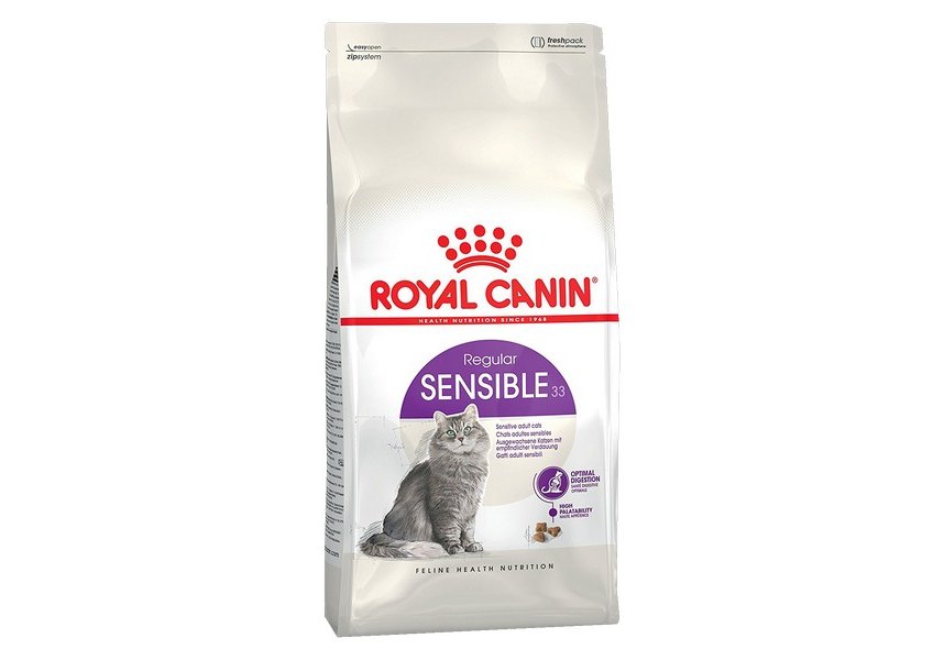 Корм сухой полнорационный сбалансированный для взрослых кошек (в возрасте старше 1 года) с чувствительной пищеварительной системой SENSIBLE 33 (СЕНСИБЛ 33) ROYAL CANIN®, подходящий для кошек в возрасте от 1 года до 7 лет с чувствительной пищеварительной системой специально разработан с учетом потребностей вашей кошки в питательных веществах.