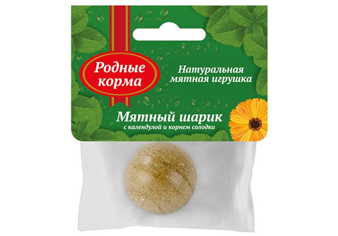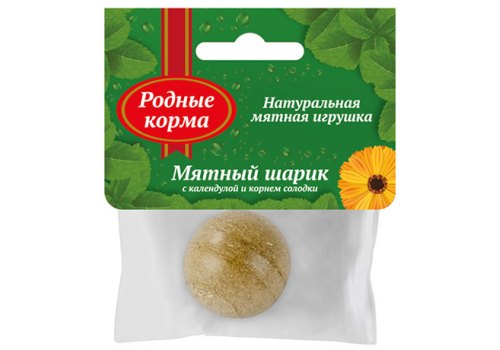 Родные Корма Игрушка для кошек Мятный шарик с календулой и корнем солодки 22 г