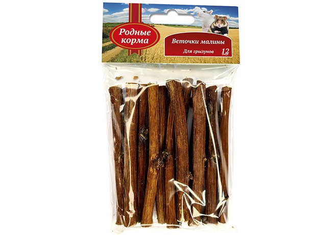 Родные Корма Веточки Малины для Грызунов 10 см х 12 шт 30 г