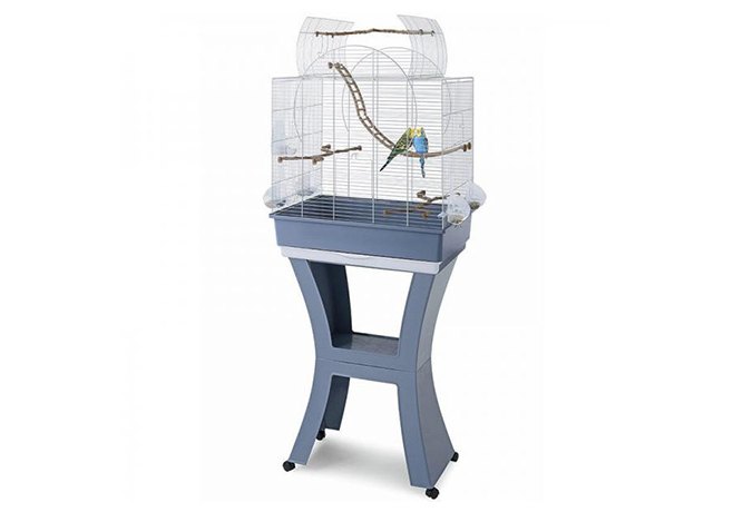 Дизайн клетки Matilda элегантный и одновременно с этим функциональный. Клетка прямоугольной формы с необычной крышей, дверцы на крыше полукруглые, распашные. Чтобы выпустить птиц полетать, дверцы достаточно распахнуть и зафиксировать одной из жердочек. Эта модель укомплектована подставкой и представлена в 2х цветовых решениях. Данный вариант - в современных цветах, пепельно-синем с белым. Такая подставка позволяет максимально комфортно разместить клетку и в случае необходимости - передвинуть без усилий. Прекрасно подойдет как для одного, так и для нескольких питомцев. За клеткой просто ухаживать благодаря выдвижному поддону, который легко моется. Клетка для птиц – должна быть качественной, удобной, практичной и безусловно красивой. Именно такие клетки делает производитель Imac. Двойное гальваническое покрытие прутьев обеспечивает долгий срок службы и сохранность внешнего вида клетки. Все материалы из которых изготовлены клетки полностью экологичны. Размер клетки 58х38х71/143см.