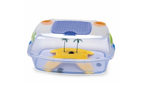 Террариум Imac DAFNE BEACH отлично подойдёт для мелких молодых водных черепах. В отличие от открытой модели NINJA - этот террариум закрытый. Прозрачная пластиковая крыша с пластиковой дверкой и специальными вентиляционными отверстиями оберегает рептилий от сквозняков и других домашних питомцев. Изготовлен из высококачественного прочного пластика, безопасного для животных, имеет прямоугольную форму. В середине ёмкости имеется островок со ступенями-сходнями, чтобы черепашкам было удобно вылезать из воды. В террариум можно положить на дно гальку и добавить искусственные растения и декоративные укрытия - так черепашки будут чувствовать себя в безопасности. Наполните емкость водой, оставив островок на поверхности. Рептилии очень теплолюбивы, но также чувствительны к перегреву, поэтому не оставляйте бассейн надолго под прямыми солнечными лучами. Бассейн также необходимо регулярно чистить, чтобы питомец не ощущал никакого дискомфорта.