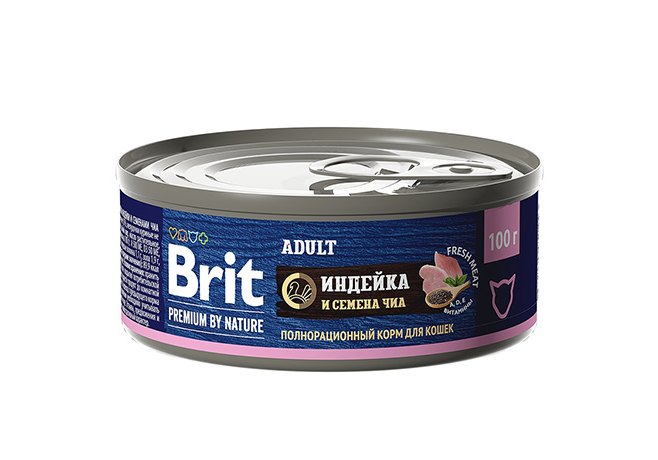 Brit Premium by Nature Adult Консервы Брит для взрослых кошек Индейка и семена Чиа (цена за упаковку) 100г х 12шт