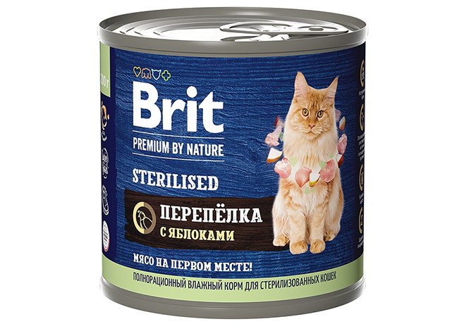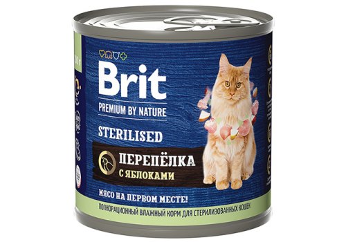 Brit Premium by Nature Sterilised Консервы Брит для Стерилизованных кошек Перепелка с яблоками (цена за упаковку) 200г х 6шт