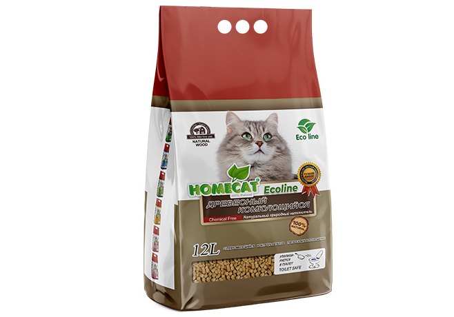Homecat Ecoline Комкующийся наполнитель Хоумкэт для кошачьего туалета Древесный 12 л