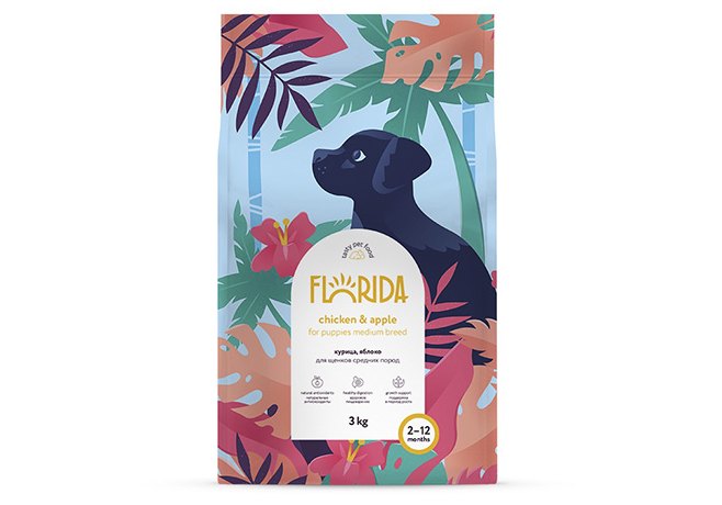 Florida Puppy Medium Breed Chicken & Apple Сухой корм Флорида для Щенков Средних пород Курица яблоко 3 кг