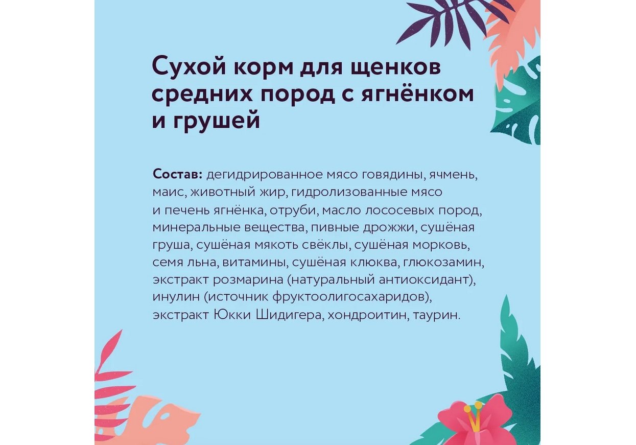 Florida Lamb and Pear - сухой корм супер-премиум-класса с ягненком и грушей для щенков средних пород.
