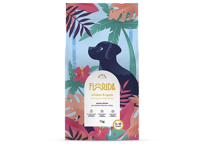 Сбалансированное полнорационное питание, способствующее правильному развитию щенка. В рационе кормов Florida используется только белок животного происхождения.