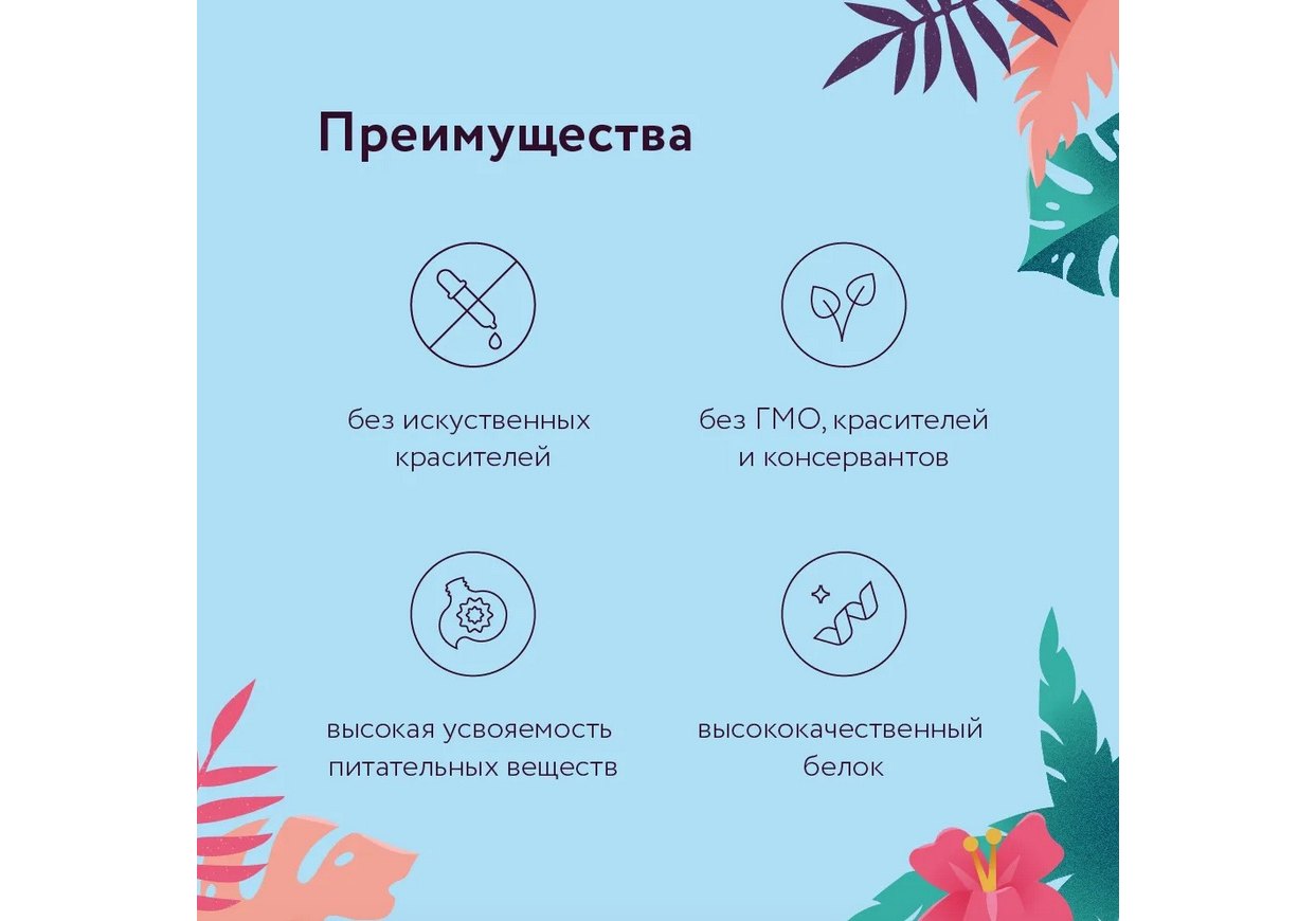 Натуральный состав с фруктами и ягодами, без добавления опасных красителей и консервантов.