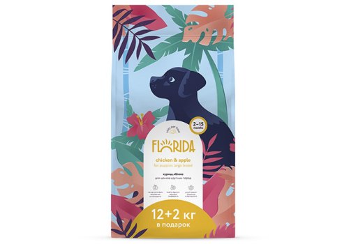 Florida Puppy Large Breed Chicken & Apple Сухой корм Флорида для Щенков Крупных пород Курица яблоко 12 кг + 2 кг