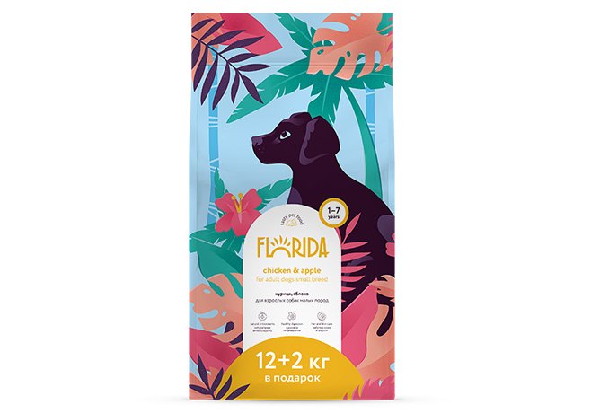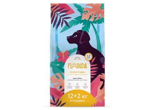 Florida Dog Adult Small Breed Chicken & Apple Сухой корм Флорида для взрослых собак Малых пород Курица яблоко 12 кг + 2 кг