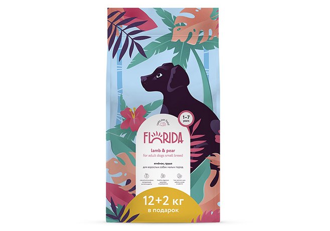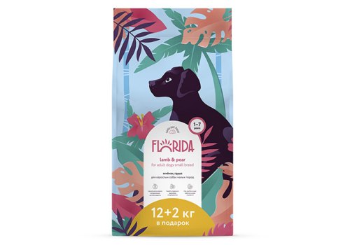 Florida Dog Adult Small Breed Lamb & Pear Сухой корм Флорида для взрослых собак Малых пород Ягненок груша 12 кг + 2 кг