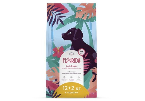 Florida Dog Adult Medium Breed Lamb & Pear Сухой корм Флорида для взрослых собак Средних пород Ягненок груша 12 кг + 2 кг