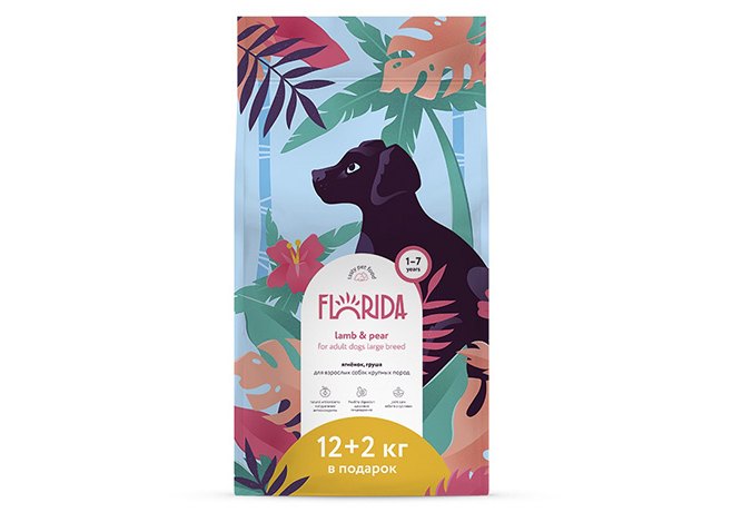 Florida Dog Adult Large Breed Lamb & Pear Сухой корм Флорида для взрослых собак Крупных пород Ягненок груша 12 кг + 2 кг