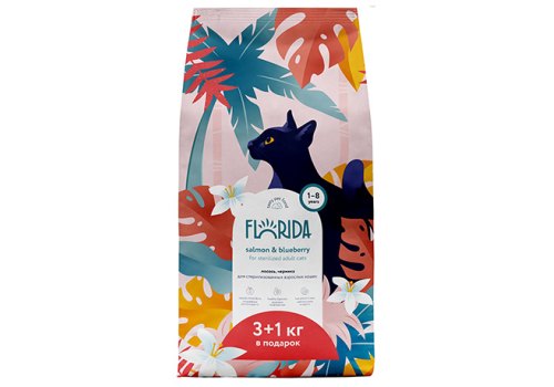 Florida Cat Sterilized Adult Salmon & Blueberry Сухой корм Флорида для Стерилизованных кошек Лосось черника 3 кг + 1 кг
