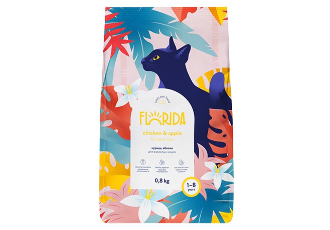 Florida Chiсken & Apple - сухой корм супер-премиум-класса с курицей и яблоком для взрослых кошек в возрасте от 1 до 8 лет.