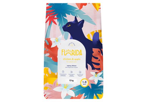 Florida Chiсken & Apple - сухой корм супер-премиум-класса с курицей и яблоком для взрослых кошек в возрасте от 1 до 8 лет.