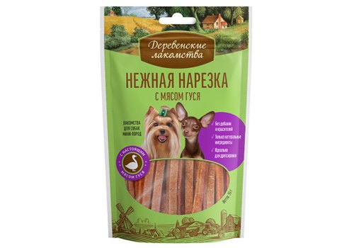 Деревенские лакомства Нежная нарезка с мясом Гуся для собак Мини пород 55 г