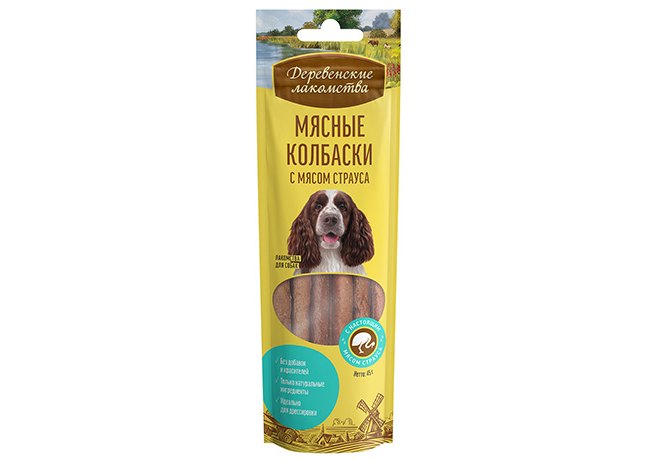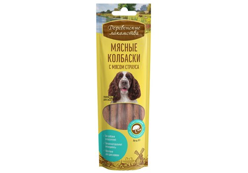 Деревенские лакомства Мясные колбаски с мясом Страуса для собак 45 г
