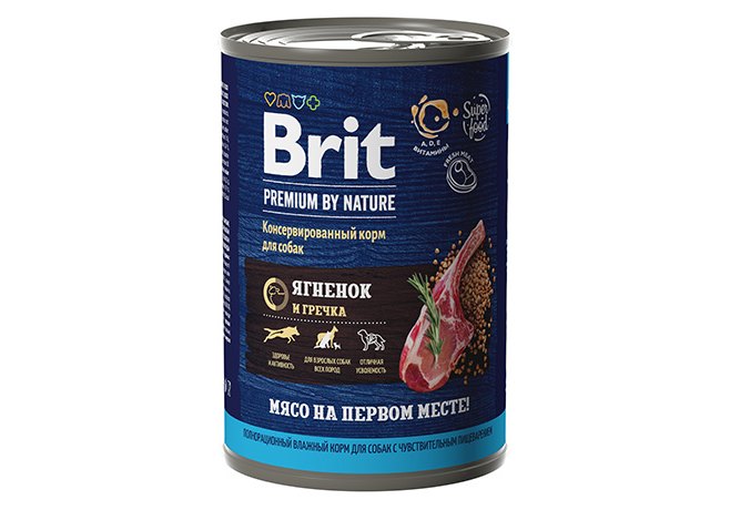 Brit Premium by Nature Консервы Брит для собак с Чувствительным пищеварением Ягненок с гречкой (цена за упаковку) 410г х 6шт