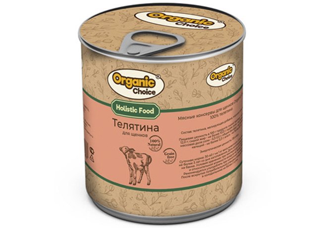Organic Сhoice Влажный корм Консервы Органик Чойс для Щенков 100 % Телятина (цена за упаковку) 340г х 12шт