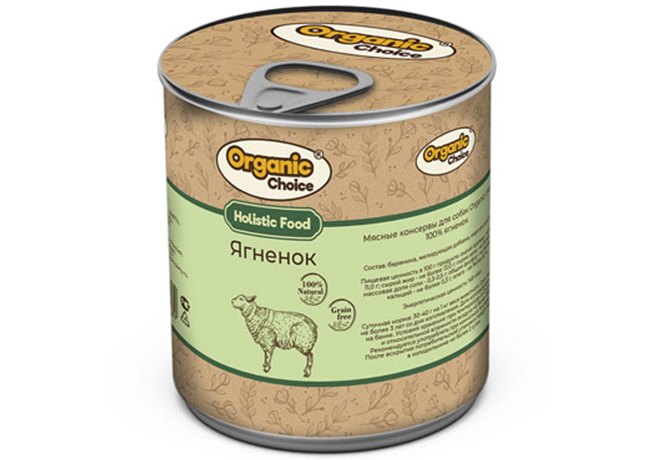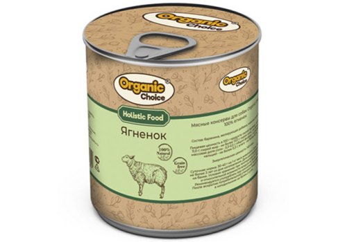 Organic Сhoice Влажный корм Консервы Органик Чойс для собак 100 % Ягненок (цена за упаковку) 340г х 6шт